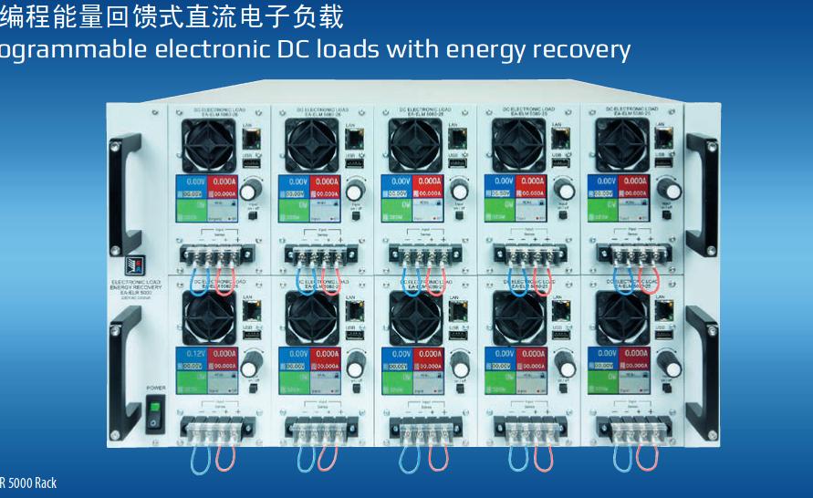 新系列EA-ELR 5000專門設(shè)計(jì)成可配置成多通道直流電子負(fù)載的。在一個(gè)19”的機(jī)柜系統(tǒng)內(nèi),可以安裝10臺(tái)功率為320 W的直流負(fù)載模塊。每個(gè)模塊可獨(dú)立操作,但是要求機(jī)柜內(nèi)安裝能量轉(zhuǎn)換的DC-AC逆變?cè)O(shè)備。模塊還可擴(kuò)展,可將模塊的直流輸入端并聯(lián)起來(lái)。負(fù)載模塊有兩種輸出電壓,一個(gè)是80 V,一個(gè)是200 V。并且配有通用的調(diào)整模式:恒壓(CV),橫流(CC)與恒功率(CP)。