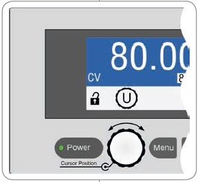 產(chǎn)品所有重要信息都清晰地顯示在彩色的TFT顯示屏上。通過該顯示器,電壓與電流的實(shí)際輸出值和預(yù)設(shè)值,(CV, CC, CP) 實(shí)際控制狀態(tài)與其它狀態(tài),報(bào)警與設(shè)置菜單的設(shè)定,都清晰顯示出來。為使旋鈕可以調(diào)節(jié)參數(shù),只需按一下該旋鈕,就可更換數(shù)值小數(shù)點(diǎn)后的光標(biāo)位置。所有這些特性都有助于操作者的便利性。其面板鎖定功能可鎖住整個(gè)面板,從而保護(hù)產(chǎn)品與連接負(fù)載免受意外誤用。