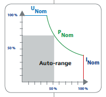 本系列所有型號的輸出功率都可靈活調(diào)整。可在較低電流時輸出較高電壓,或在低電壓時輸出較高電流,但總是維持在最大額定功率范圍內(nèi)。因此僅用一臺產(chǎn)品就能覆蓋廣泛的應(yīng)用。
